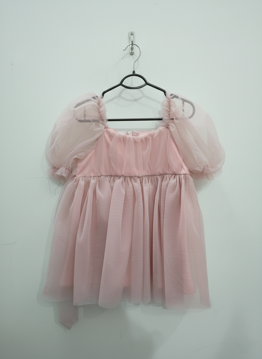 Elegant Baby Pink Net Party Frock – Leftover Stock (18″ Length, 12″ Chest)