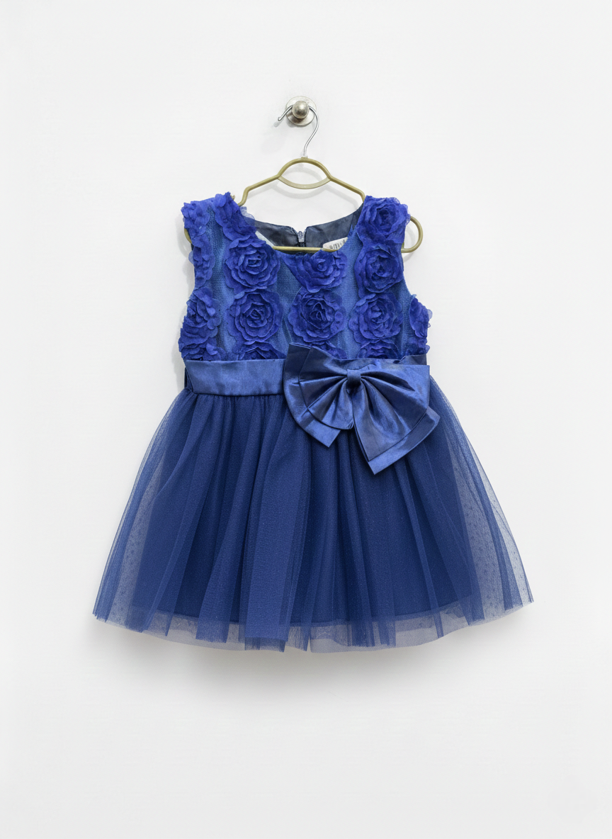 This stunning royal blue frock features a beautiful floral design on the bodice with a soft net flare, giving it a premium and elegant party look.
